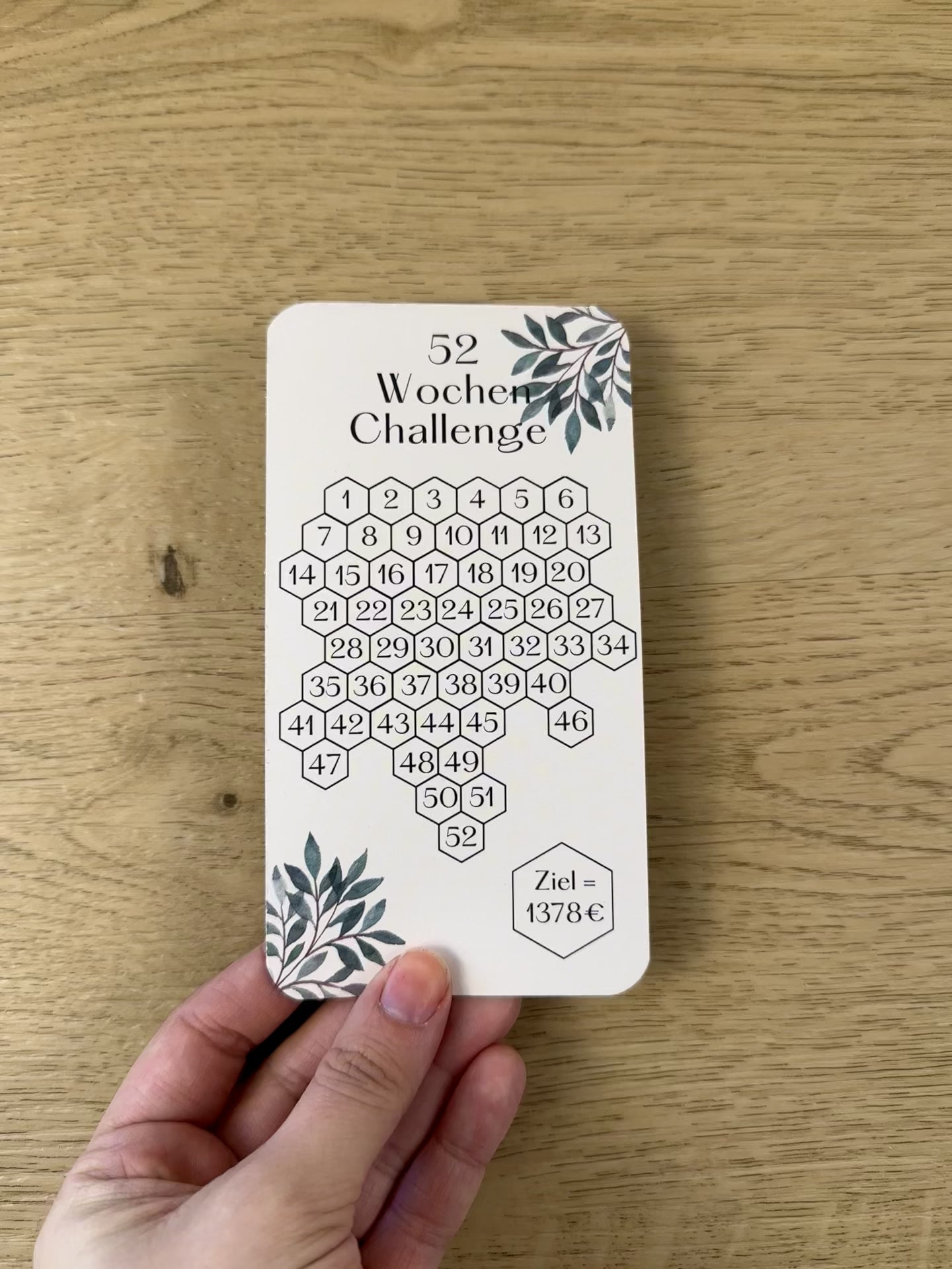 Die 52 Wochen-Challenge ist eine einfache und effektive Methode, um in einem Jahr 1378€ zu sparen. Jede Woche legst du einen Betrag deiner Wahl von 1-52 € in den Umschlag.