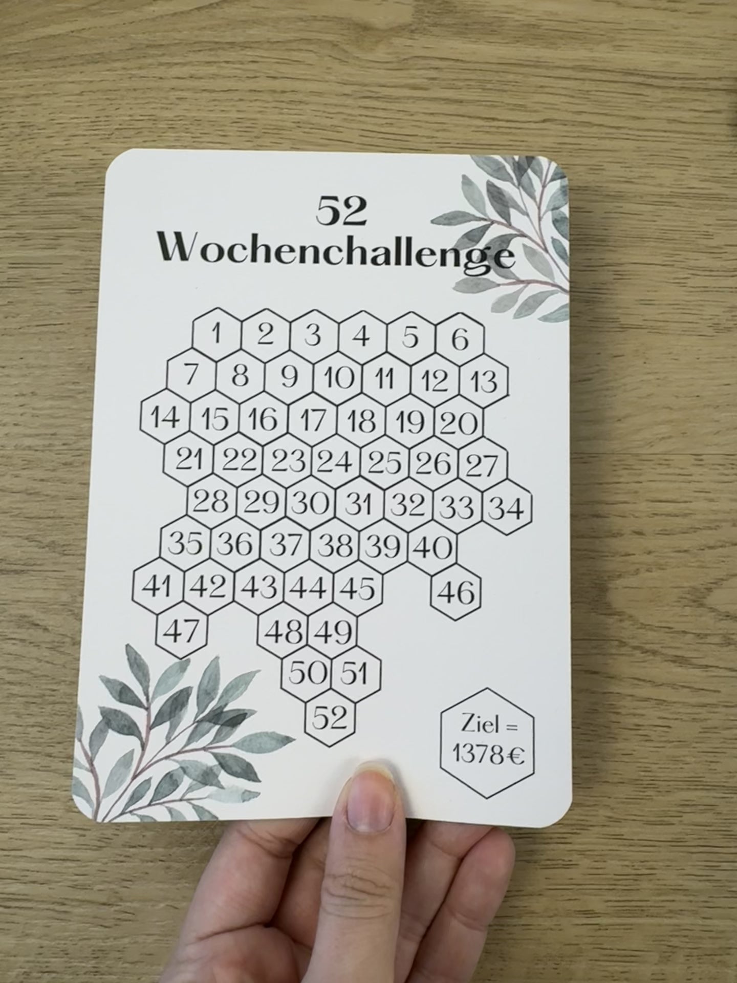 Die 52 Wochen-Challenge ist eine einfache und effektive Methode, um in einem Jahr 1378€ zu sparen. Jede Woche legst du einen Betrag deiner Wahl von 1-52 € in den Umschlag.