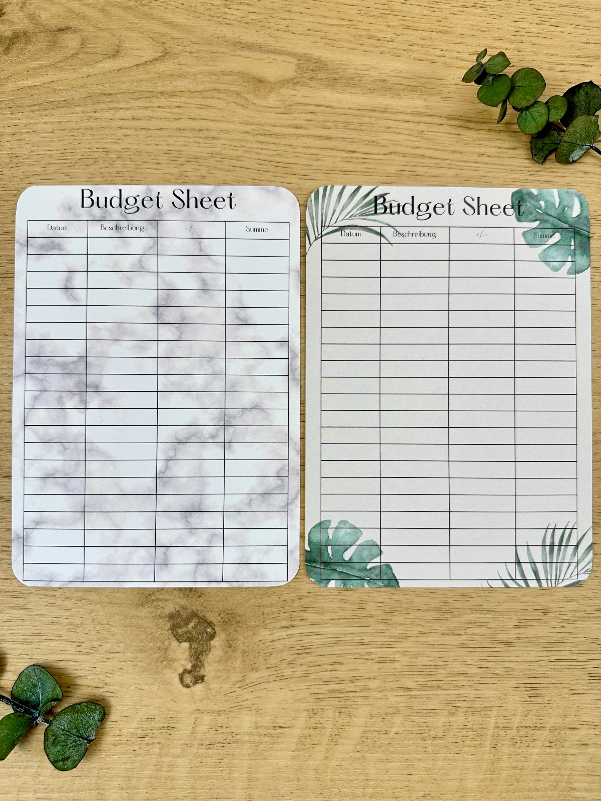 Ob in Pink, edler Marmor-Optik, mit Blätter-Muster oder klassisch in Weiß – gestalte deine Finanzplanung ganz nach deinem Stil.