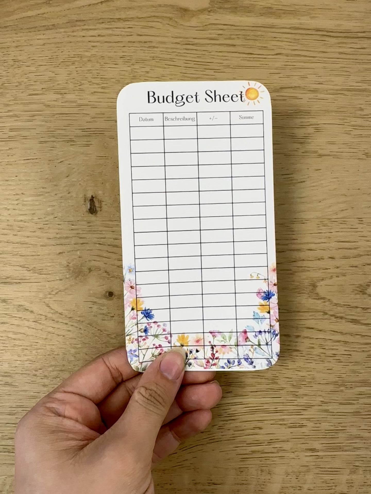 Mach deine Finanzplanung zum fröhlichen Frühlingserlebnis! Unser Budget Sheet im limitierten Frühlingsdesign kombiniert praktische Funktion mit einem liebevoll gestalteten Look – perfekt für deinen Budget Binder oder als Ergänzung zum Cash Envelope System.
