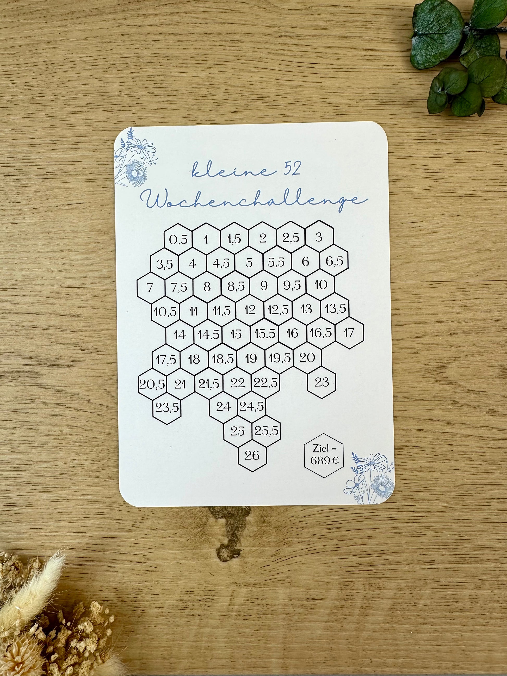 Kleine 52 Wochen Challenge 689 Euro inkl. Budget Sheet in A5